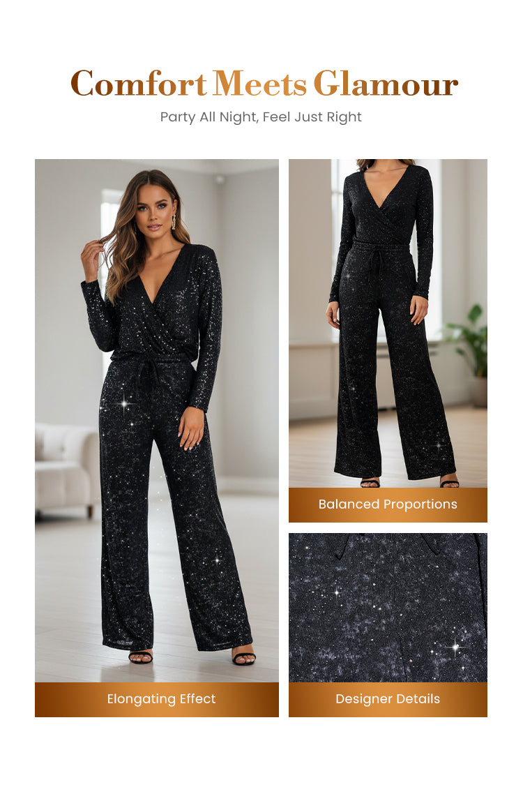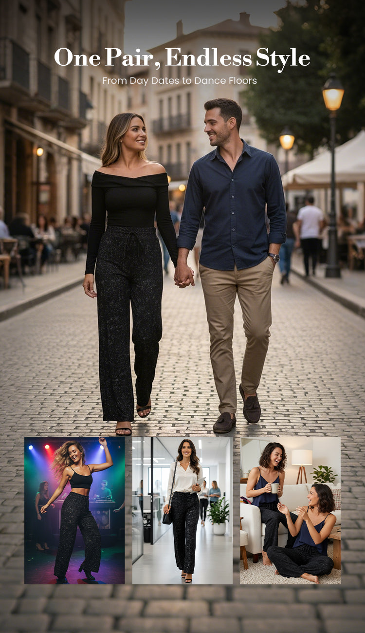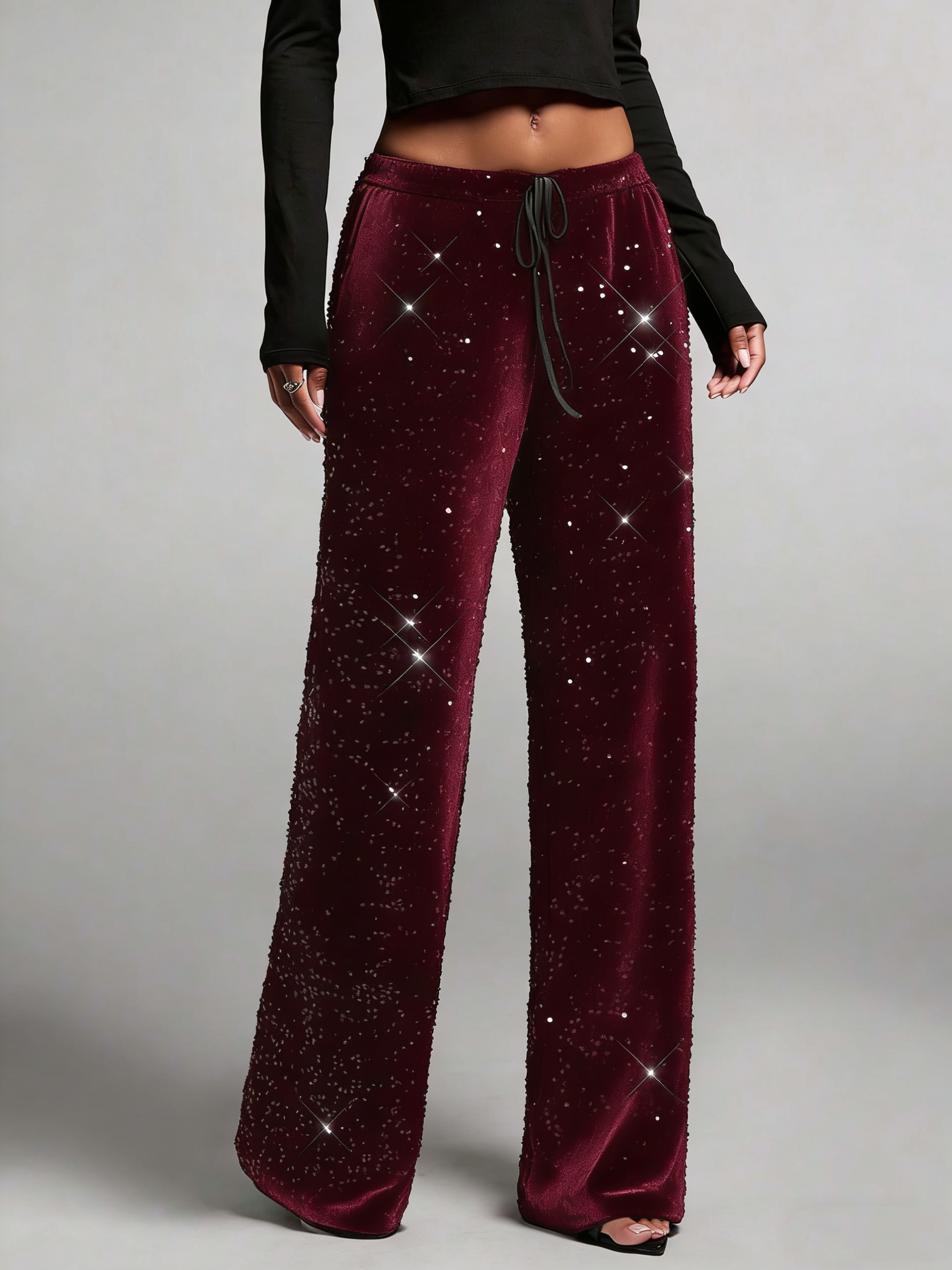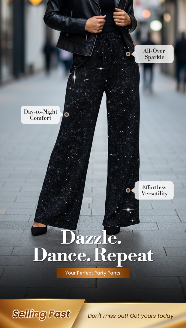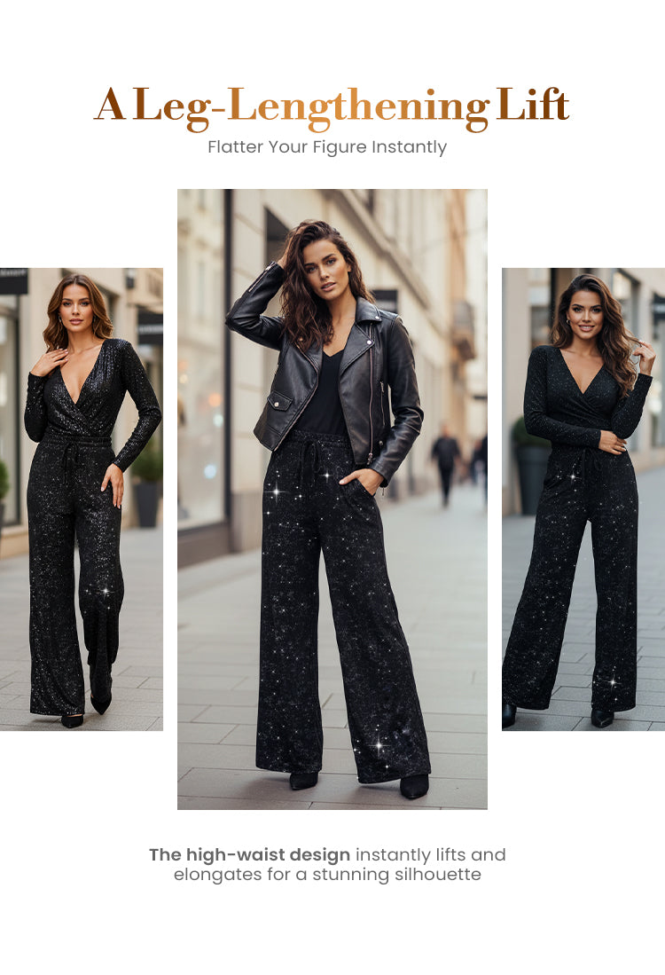 ⏰LAST DAY SALE 50% OFF🥰Women's Sequin Sparkle Wide Leg Pants with Elastic Waistband