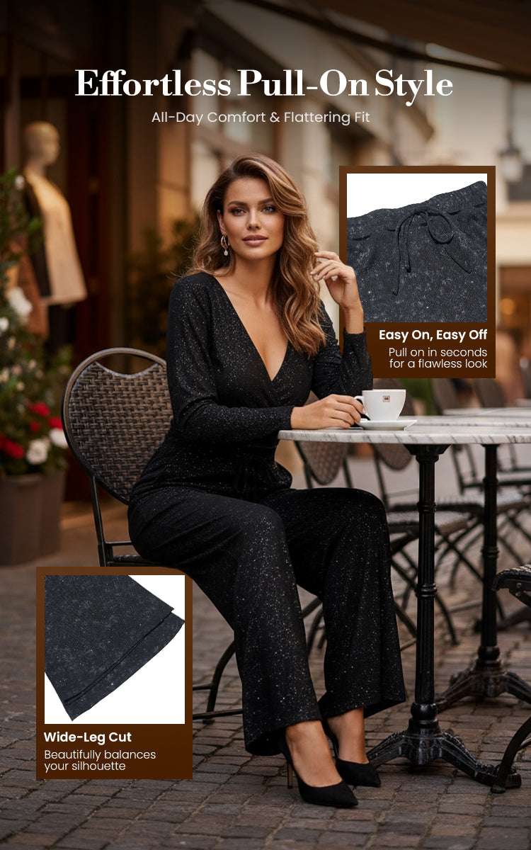 • ⏰LAST DAY SALE 50% OFF🥰Women's Sequin Sparkle Wide Leg Pants with Elastic Waistband