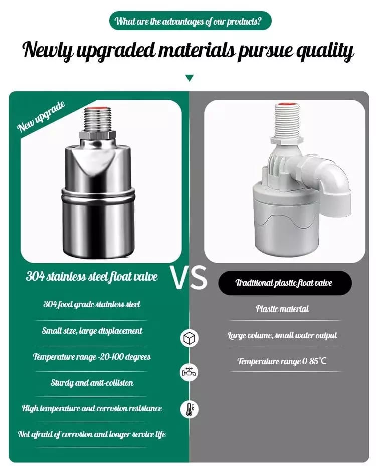 【Auto function】Flair-gorgeous the float valve automatically refills water for your water tank,water tower,livestock,animal water drinker when water drops below the valve level. Once it reaches the valve, it would automatically stop refilling water,so it will shut-off when the water reaches the internal float.